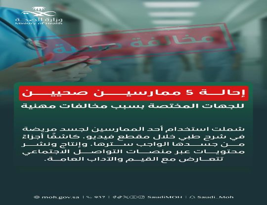 وزارة الصحة تحيل 5 ممارسين صحيين للجهات المختصة بسبب مخالفات مهنيةأدارة الموقع1 يناير، 2025أعلنت وزار ... اقرأ أكثر